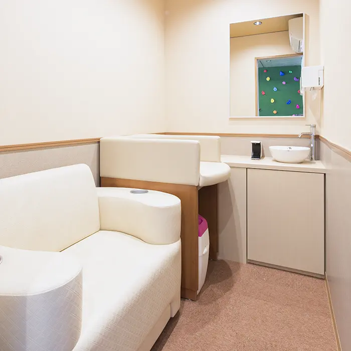 鍵のかかる授乳室は冷暖房完備。安心してご利用ください。パパもご利用いただけます。