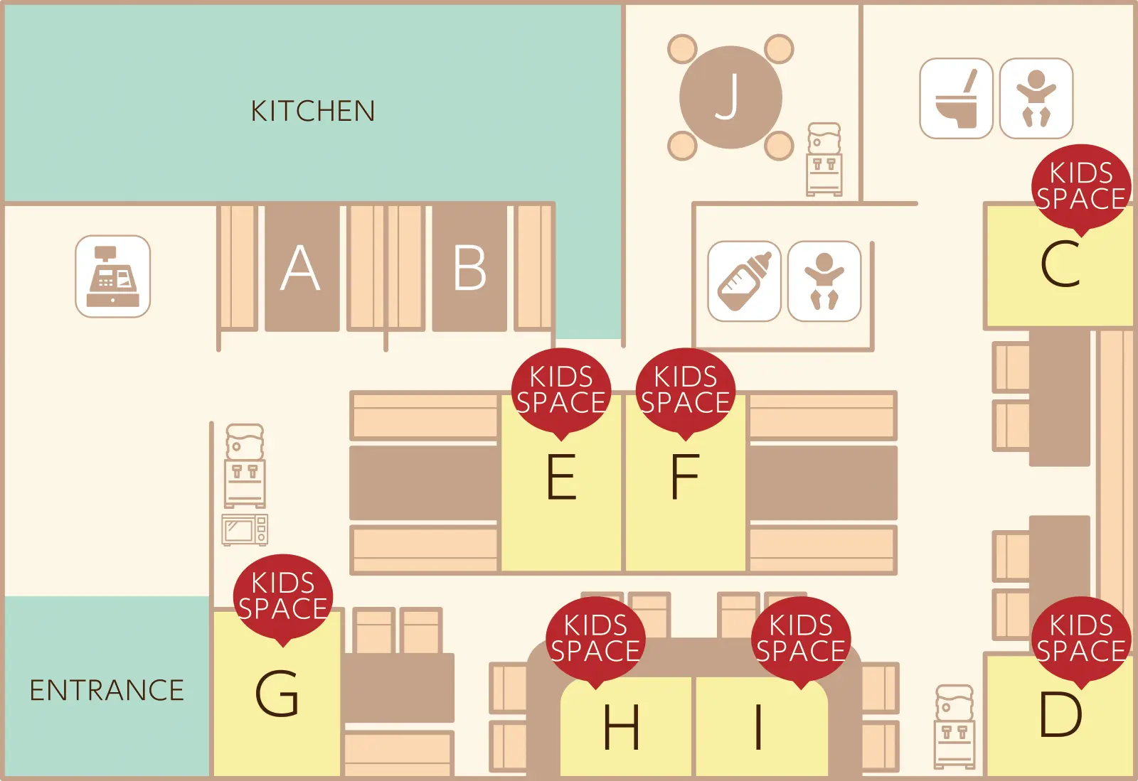 赤ちゃん連れのために作られた店内