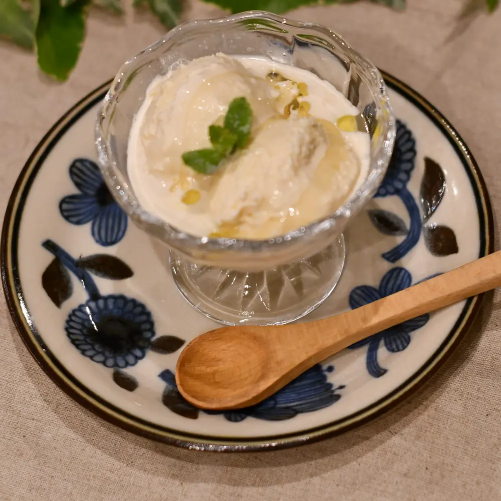 塩バニラアイス 〜オリーブオイル&はちみつ掛け〜