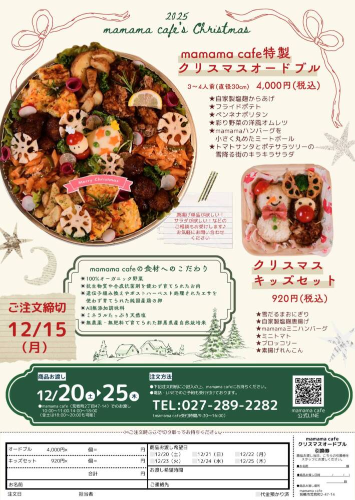 ぜひぜひmamama cafeのオードブルをご検討ください🦌🎄