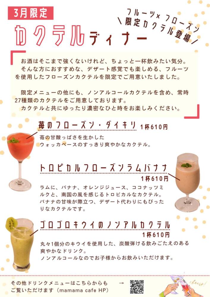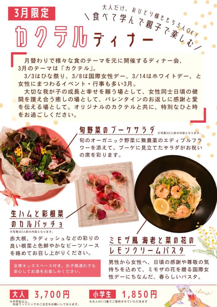 3月毎週金・土・月曜祝日の場合の日曜日17:00〜21:00