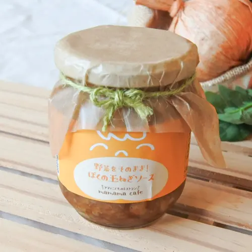 オーガニックのシャキシャキ生玉ねぎと無添加の調味料のみでつくった自家製ソース。ハンバーグやローストビーフなどのお肉のソースとしてはもちろん、卵かけご飯に醤油の代わりとしてかけたり、冷や奴にも♪